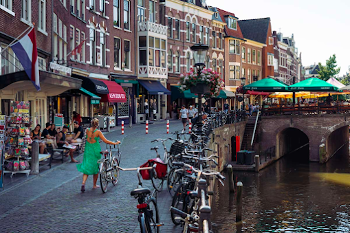 So how in the world do Europeans maintain such beautiful infrastructure? To the skeptical and hot blooded American, they may assume it's simply an overreach of governmental control. There's likely some truth to that in particular countries like England, because royals own 90% of the land, and it's not being given up any time soon. But in reality, the majority of European cities are so beautiful and unscathed because of their wise and proper mixed zoning laws, well thought infrastructure and cities are specifically created for a car-independent life. The Netherlands is absolutely famous for their pedestrian priority cities. This street here in the Netherlands is made for walking, bicycling and very slow moving car traffic. It's meant to be scenic, peaceful and easy to get around without a car for a local. That includes, the grocery store, the barber, the local coffee shop, and of course, their children's schooling. There are little to no billboards and franchises here because nobody wants to live directly next to a Mcdonalds. The free market reigns... in favor for the pedestrian again, maintaining the charm and peace of the town. They are designed to be functional and beautiful. It's a daily occurrence to see people walking and interacting with their neighbors outside, eating at locally owned restaurants, shopping, biking along the designated paths and children are out and about, playing independently with each other. For fast speed travel, there are also trains, and trams all over the city to take people to their jobs and across city distances. Everything is zoned properly together without the car in mind, so communities can become more tight knit, safe, and self sustaining.